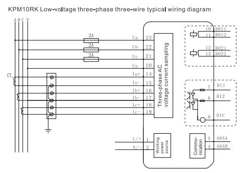1. The wiring diagram is suitable for low voltage three-phase three-wire system, low voltage three-phase four-wire system