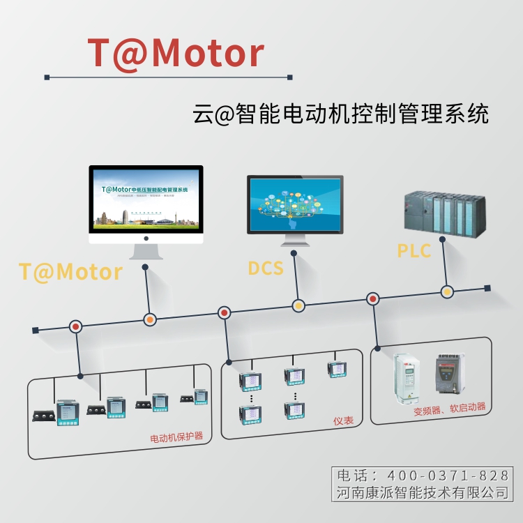 云@智能電動機控制管理系統是以康派智能低壓電動機保護控制器為基礎,配合具有多種低壓控制總線接口的通訊管理機,使低壓電動機接受來自DSC的監控,并將各種關于低壓電動機的運行數據傳輸到電氣系統監控主機,通過數據分析為低壓電動機的保護、控制、管理提供整體解決方案。
