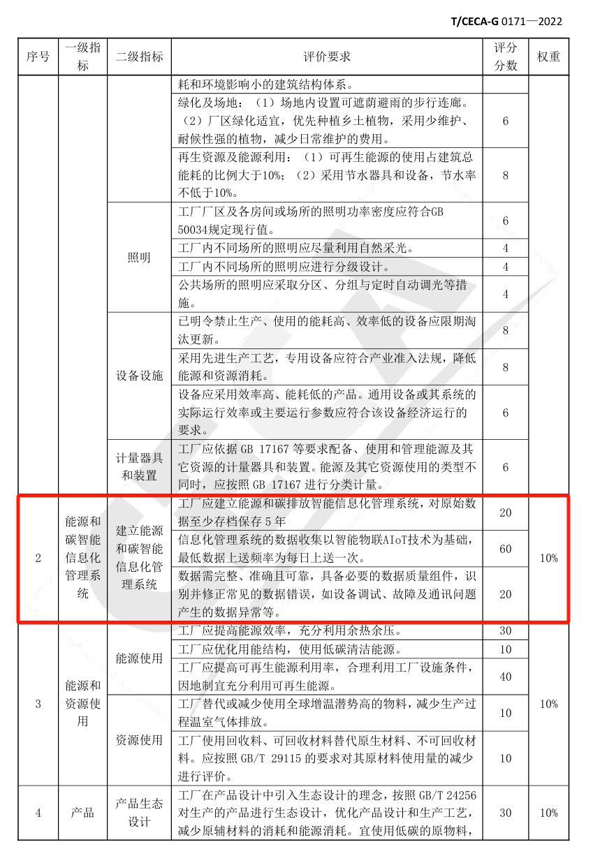 零碳工廠:中國節能協會發布的團體標準《零碳工廠評價規范》中表B.2零碳工廠評價要求表中一級指標中能源和碳智能化信息管理系統的二級指標能源和碳智能化信息管理系統的具體評價要求中建有能源管理中心可以+100分,占比10%。