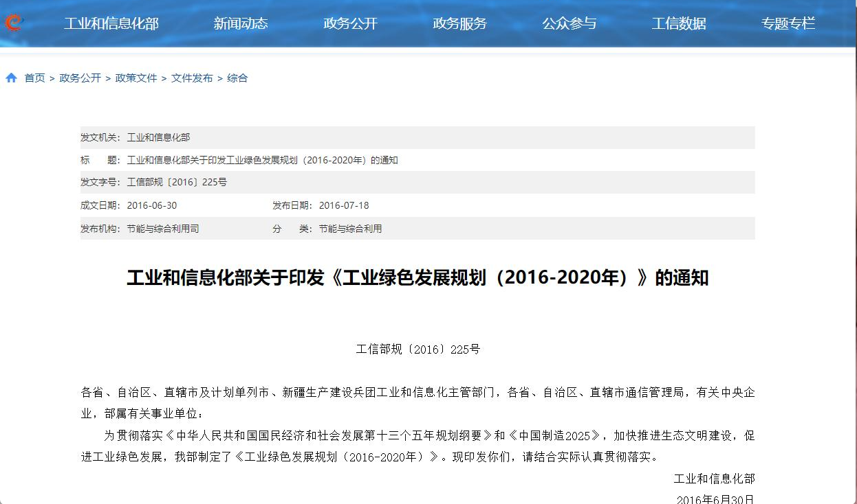 對此,工信部先后發布了《工業綠色發展規劃(2016-2020年)》等多份文件,旨在加快推動綠色制造體系建設,打造綠色制造先進典型,引領相關領域工業綠色轉型。