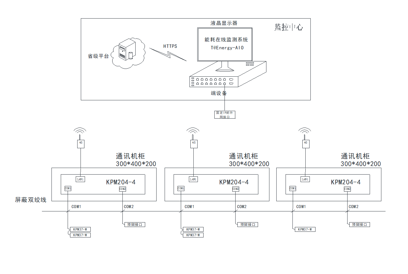 現場二級監測點都安裝有機械表計,因此可利舊其電流互感器,為了減少施工難度、縮短施工周期,在監測點增加帶有外置開啟式的二次電流互感器的智能電力儀表(KPM307-W)。